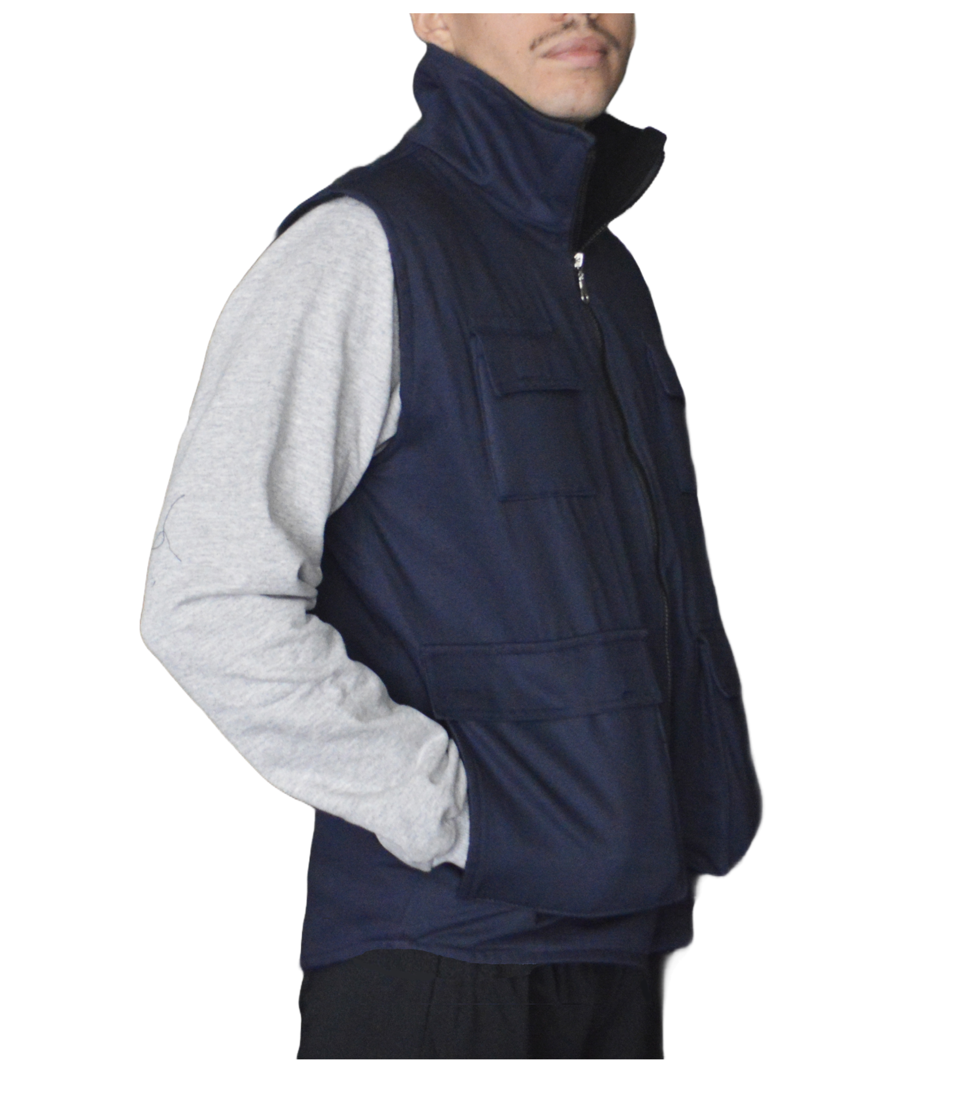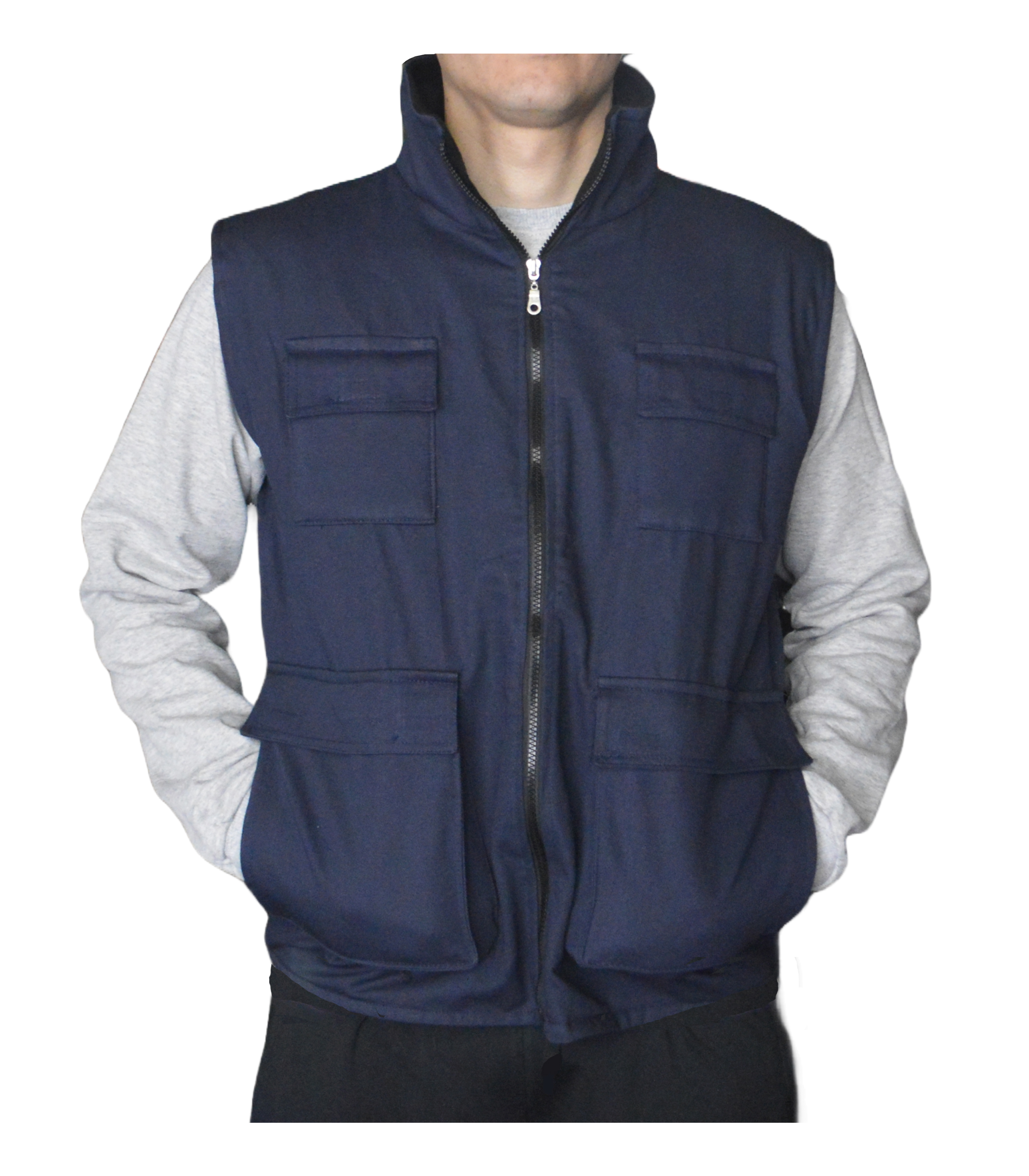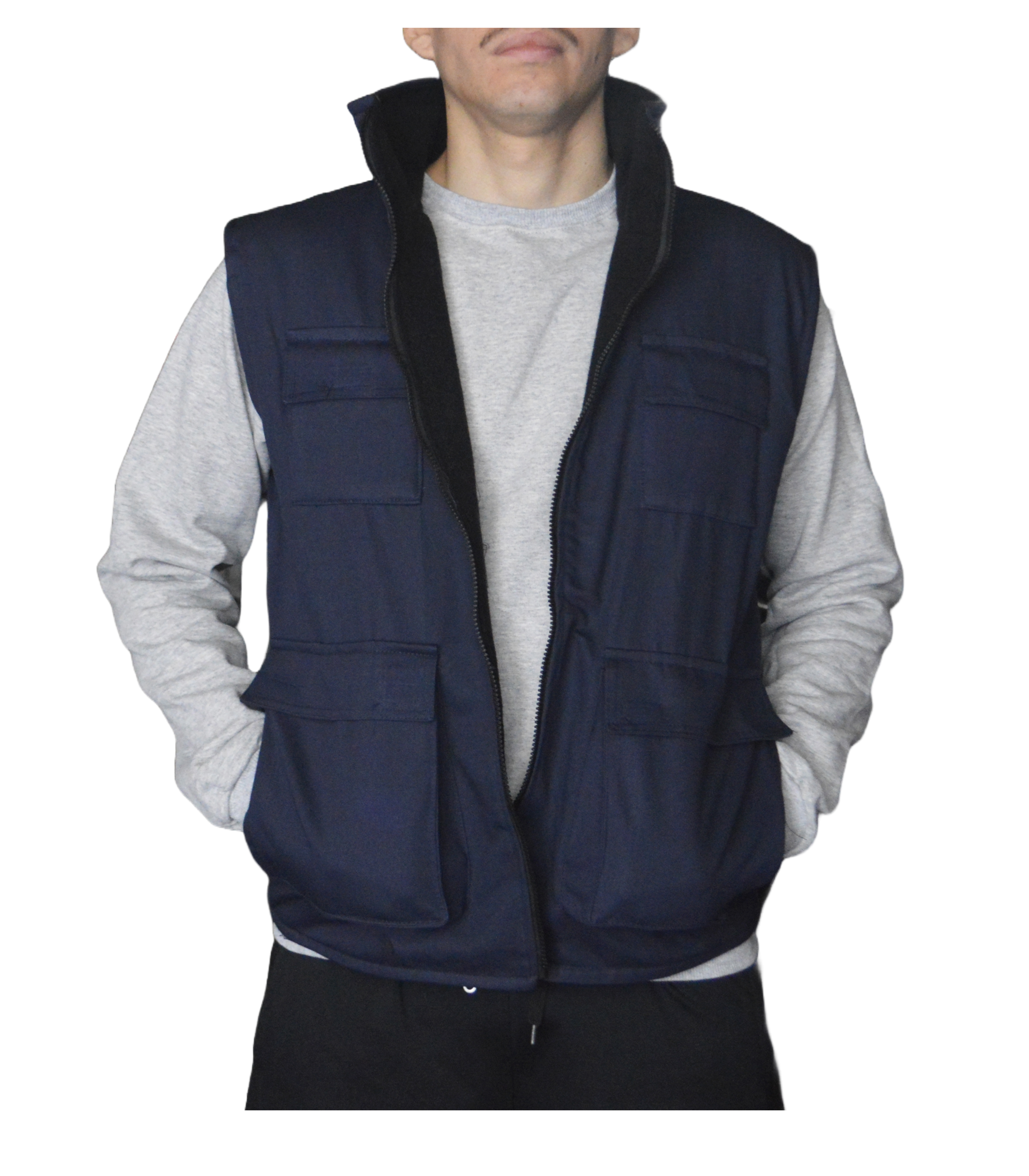 Chalecos confeccionados en gabardina de 8 oz, 100% algodón sanforizado, con proceso Indanthren (anti cloro) para mayor durabilidad del color. El interior está forrado con polar antipeeling, brindando comodidad y resistencia para el trabajo o el uso diario.